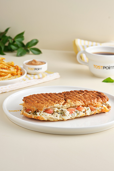 Susamlı Sandviç Ekmeği, Tam Yağlı Beyaz Peynir, Domates, Mozzarella Peyniri, Kekik.